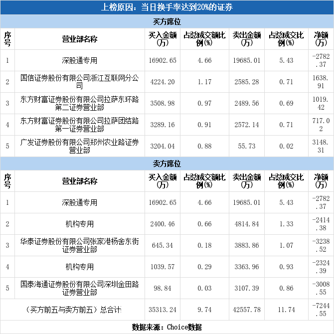 多主力现身龙虎榜,海陆重工换手率达40.74%(11-11)