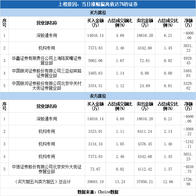 今日龙虎榜单上出现了深股通的身影,占据了买一、卖一的位置,净卖出4600.06万元,占当日成交总额的1.53%。