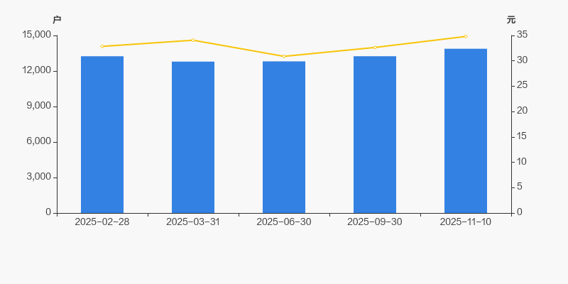 自2025年3月31日以来,公司股东户数连续3期上涨,截至目前增幅为8.50%。2025年3月31日至2025年11月10日区间股价上涨2.17%。