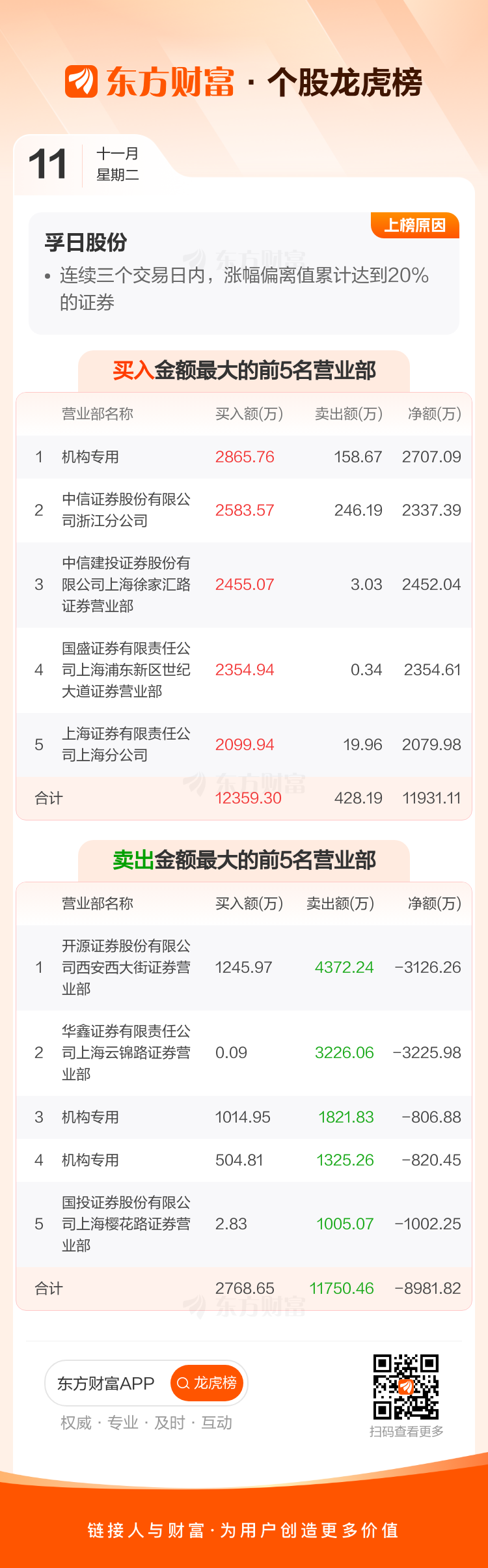 交易所2025年11月11日公布的交易公开信息显示,孚日股份因成为连续三个交易日内,涨幅偏离值累计达到20%的证券上榜。孚日股份当日收报8.68元,涨跌幅10.01%,换手率13.48%,成交额11.00亿。异常期间11月10日至11月11日,期间涨幅21.06%,累计偏离值21.13%,区间成交额12.56亿。