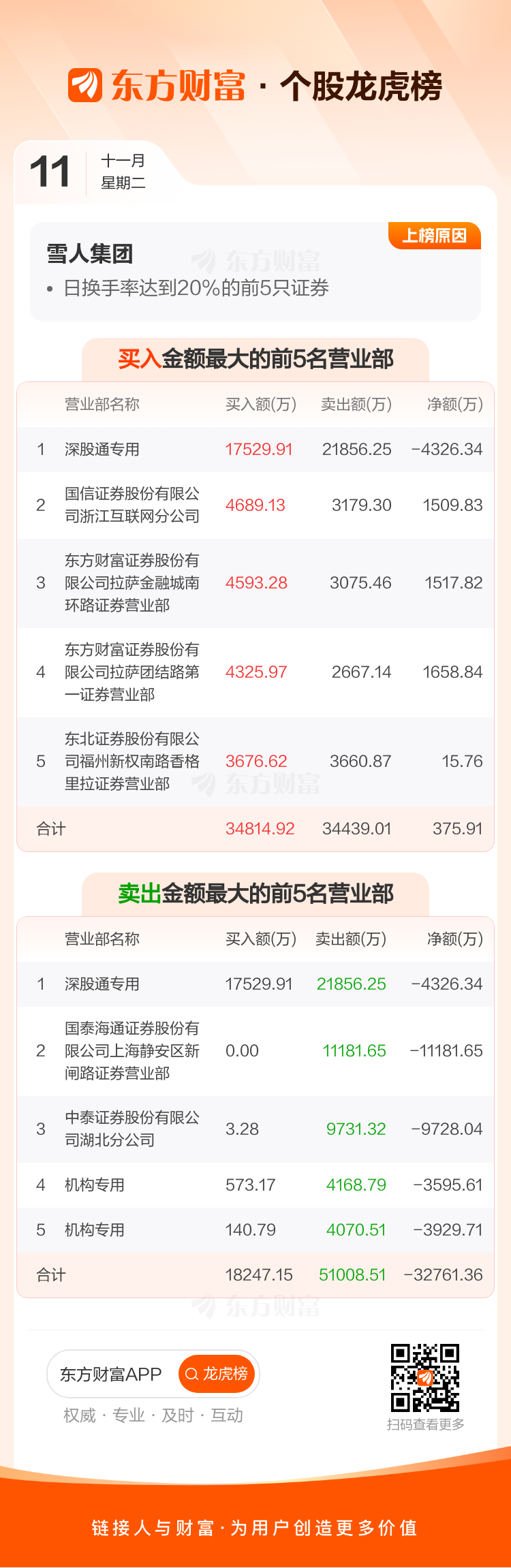 雪人集团(002639)龙虎榜数据(11-11)