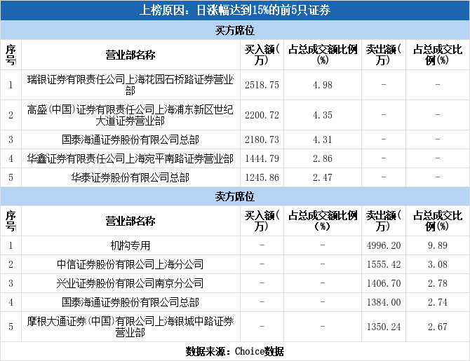 机构现身龙虎榜,磁谷科技涨停(11-11)