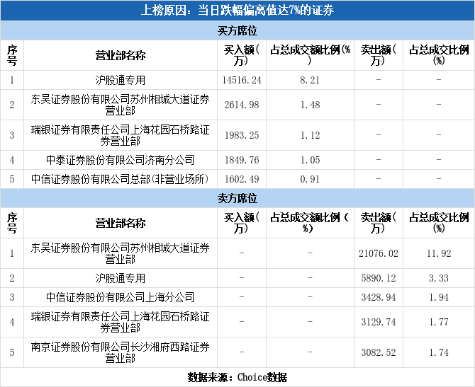 今日龙虎榜单上出现了沪股通的身影,占据了买一、卖二的位置,净买入8626.12万元,占当日成交总额的4.88%。