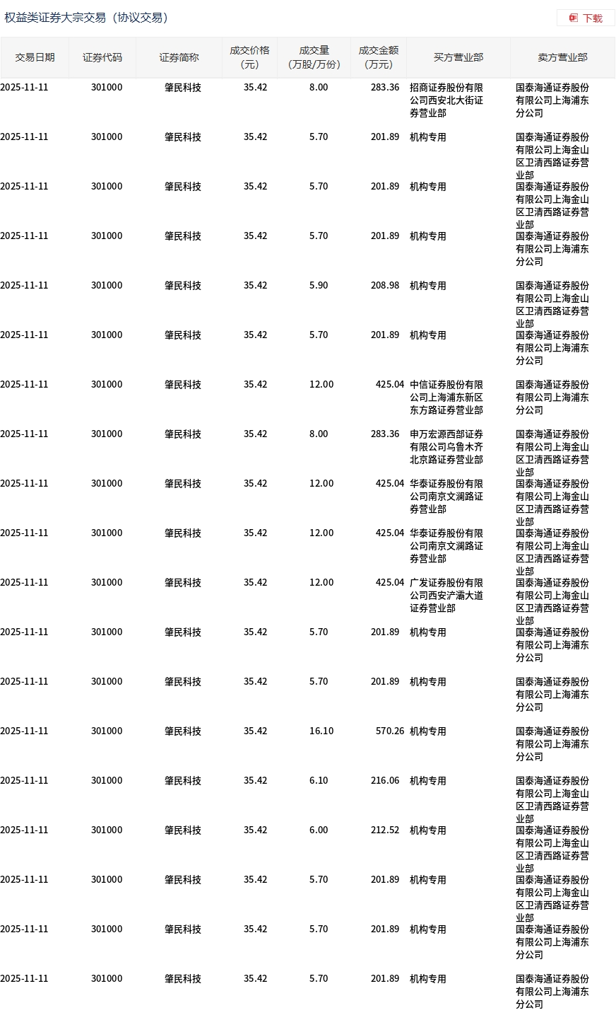 肇民科技今日大宗交易折价成交149.4万股,成交额5291.71万元