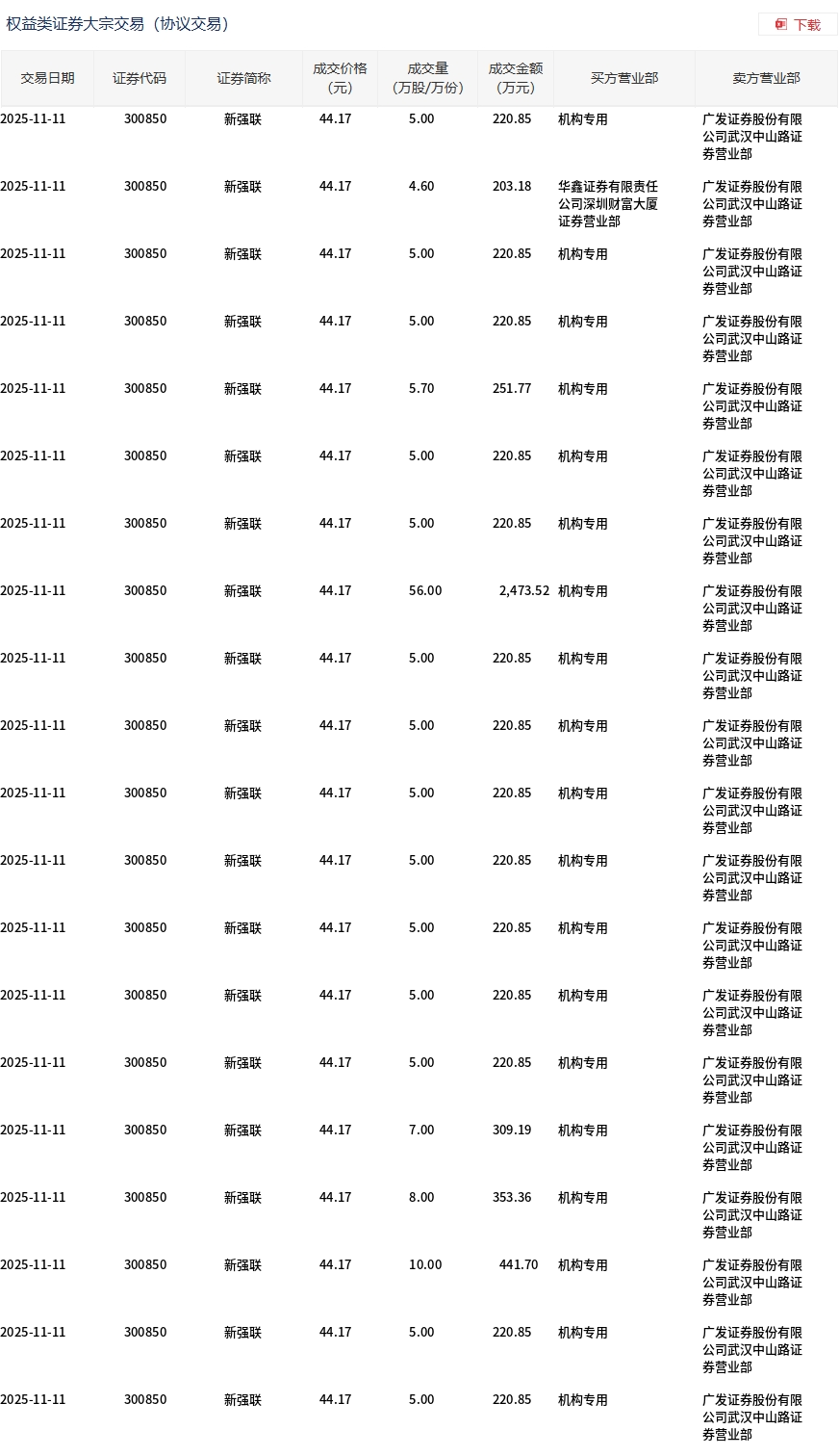 新强联今日大宗交易折价成交277.1万股,成交额1.22亿元