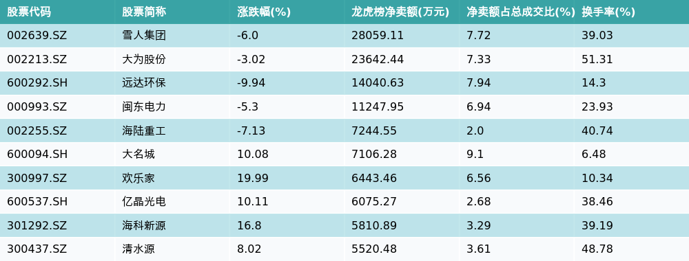 11月11日龙虎榜净卖出额前10个股