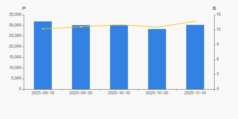 2025年9月19日至今,公司股东户数有所下降,区间跌幅为5.12%。2025年9月19日至2025年11月10日区间股价上涨12.38%。