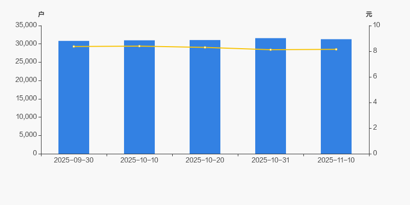 2025年9月30日至今,公司股东户数有所增长,区间涨幅为1.51%。2025年9月30日至2025年11月10日区间股价下降2.63%。