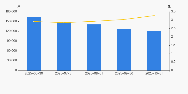 自2025年6月30日以来,公司股东户数连续4期下降,截至目前减幅为26.24%。2025年6月30日至2025年10月31日区间股价上涨11.99%。