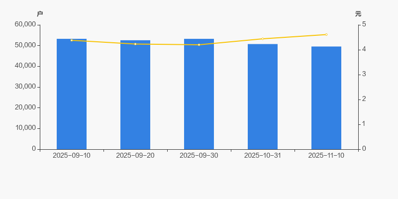 2025年9月10日至今,公司股东户数有所下降,区间跌幅为6.96%。2025年9月10日至2025年11月10日区间股价上涨5.28%。