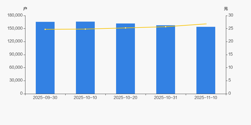 自2025年10月10日以来,公司股东户数连续3期下降,截至目前减幅为7.19%。2025年10月10日至2025年11月10日区间股价上涨8.01%。