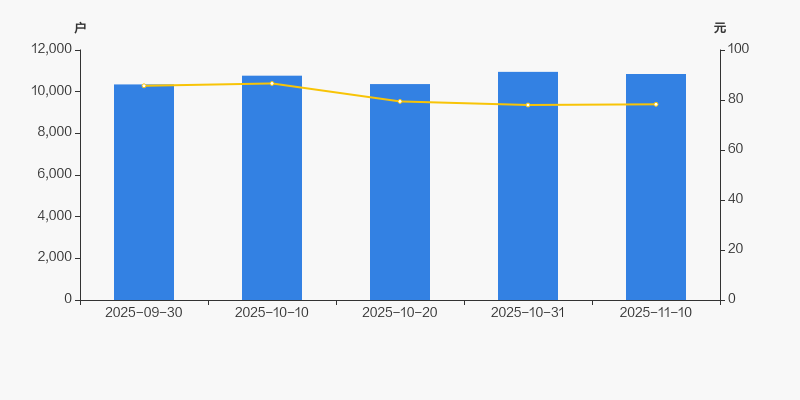 截至2025年11月10日,公司最新总股本为8000.4万股,其中流通股本为3418.32万股。户均持有流通股数量由上期的3121股上升至3151股,户均流通市值24.67万元。