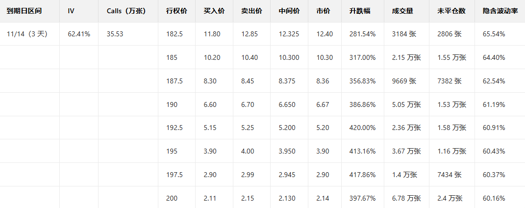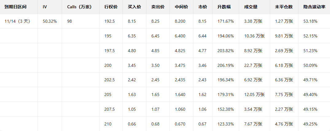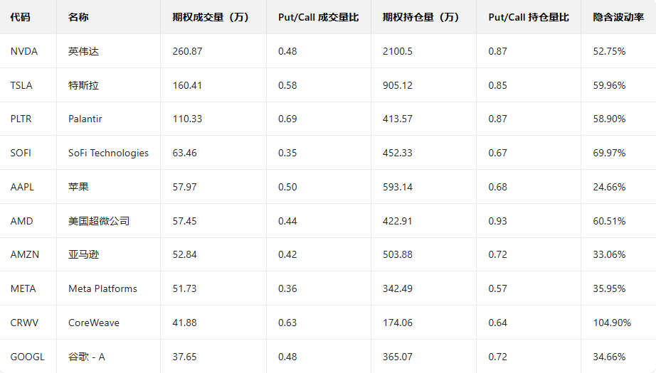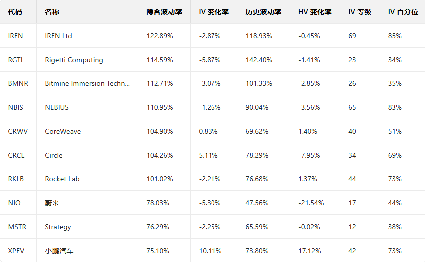美股引申波动幅度排行榜前十(标的市值>100亿美元,且期权成交量>10万美元)