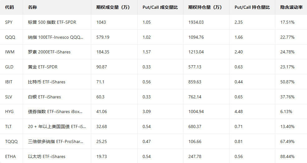 三、美股ETF期权成交榜美股ETF期权成交量排行榜前十