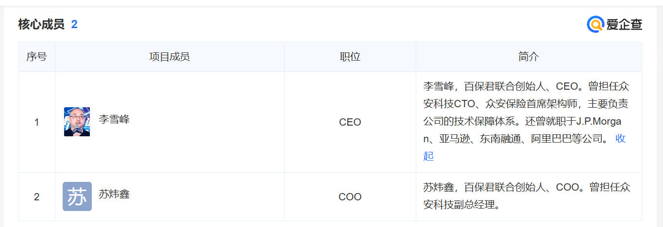 百保君核心成员(图片来源:爱企查)