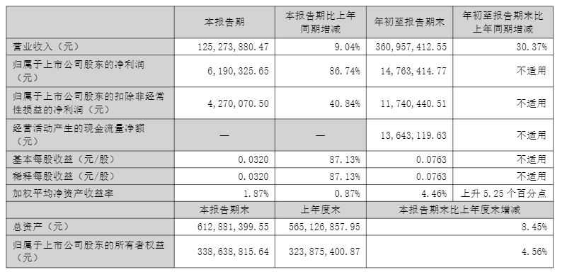 今年前三季度,汇源通信实现营业收入3.61亿元,同比增长30.37%,实现归母净利润1476.34万元。