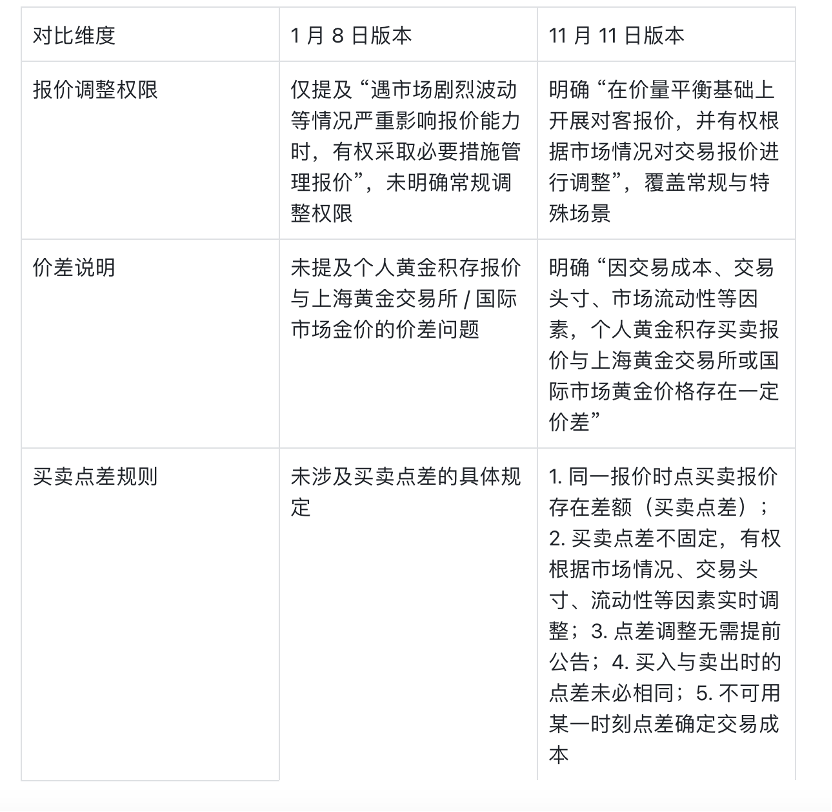 •   同一报价时点,个人黄金积存买卖报价之间存在一定差额(即买卖点差);