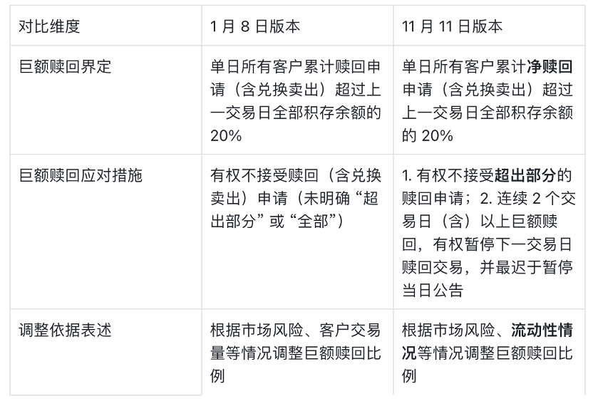 其中最为核心的变化为,新规则引入了“净赎回”概念。