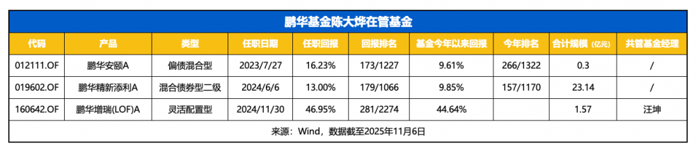 陈大烨有8年的证券从业经验和4年基金管理经验,目前在管3只基金,鹏华精新添利和鹏华安颐由他独立管理。其中,鹏华精新添利(019602)深得机构偏爱,截至今年上半年末,该基金的机构持有者比例超过99%,同时员工自购比例也达到0.15%。