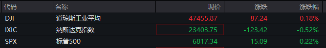 当地时间11月11日,美股开盘涨跌不一,道指小幅上涨,纳指、标普500指数走低。截至发稿,道指涨0.18%,标普500指数跌0.22%,纳指跌0.52%。