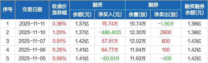 禾丰股份:融资净买入15.74万元,融资余额1.37亿元(11-11)