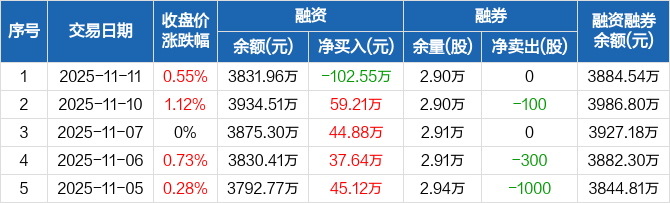 欧普照明:融资净偿还102.55万元,融资余额3831.96万元(11-11)