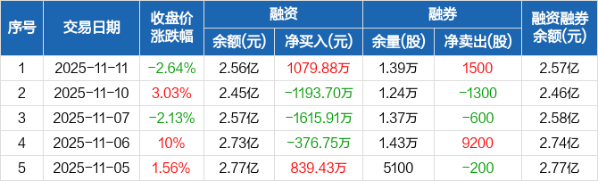 派克新材:融资净买入1079.88万元,融资余额2.56亿元(11-11)