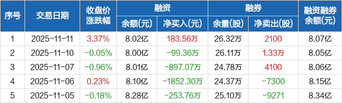 有研新材:融资净买入183.56万元,融资余额8.02亿元(11-11)