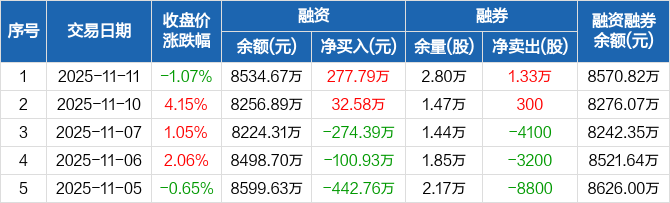 天味食品:融资净买入277.79万元,融资余额8534.67万元(11-11)