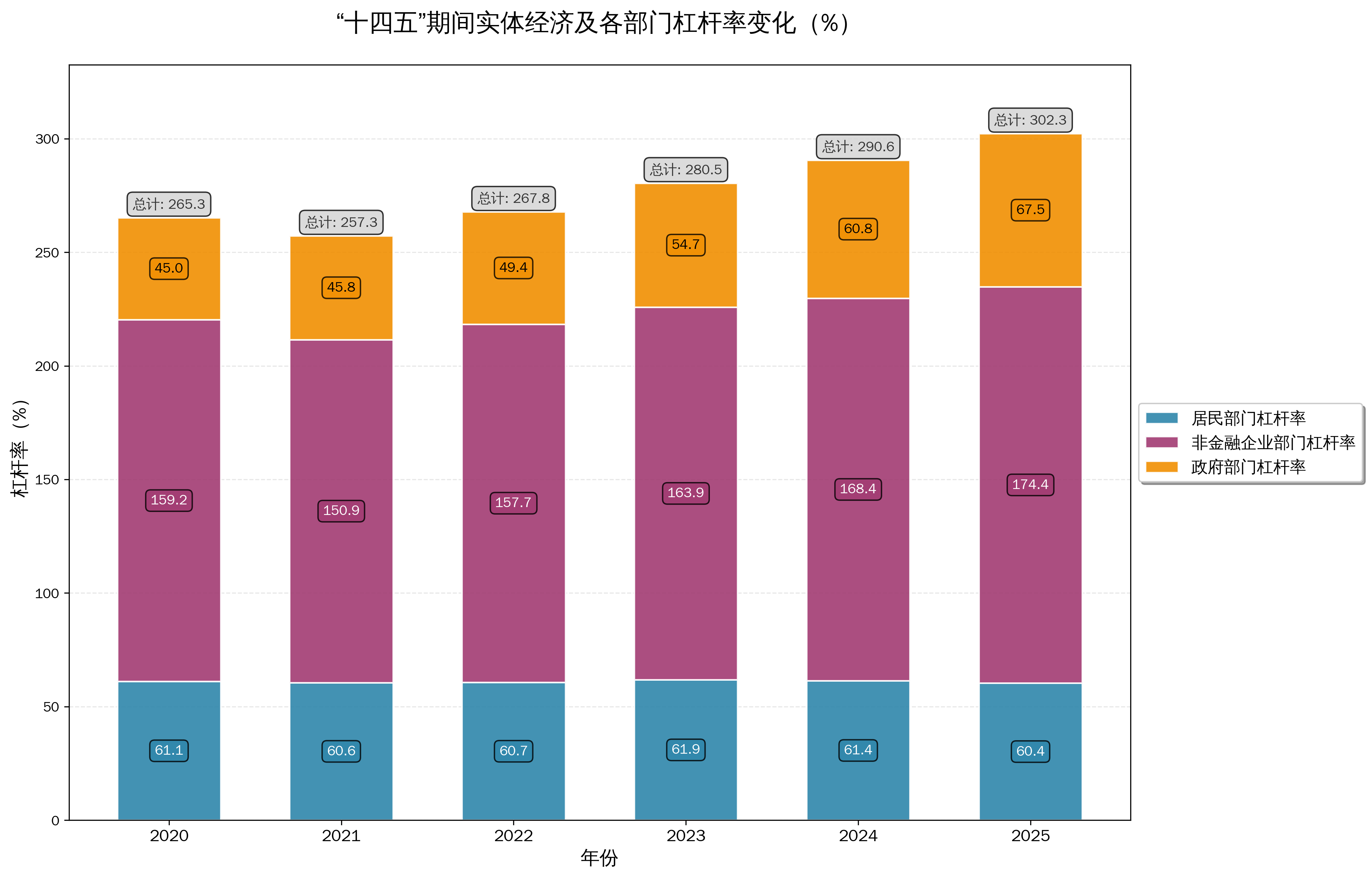 界面新闻:国家金融与发展实验室的数据显示,“十四五”期间,实体经济宏观杠杆率上升37个百分点至302.3%(2025年9月末),政府部门成为加杠杆的主体。如何看待十五五期间的宏观杠杆率水平,各部门的杠杆率又会如何变化?