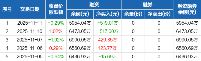 恒生创新药ETF:融资净偿还519.01万元,融资余额5954.04万元(11-11)