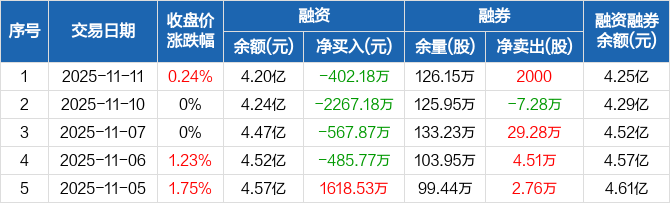 中国广核:融资余额4.2亿元,创近一年新低(11-11)