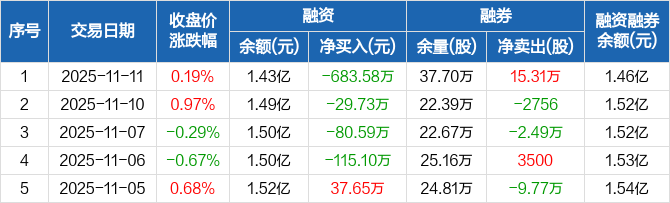 伟星新材融资融券信息显示,2025年11月11日融资净偿还683.58万元;融资余额1.43亿元,较前一日下降4.58%。