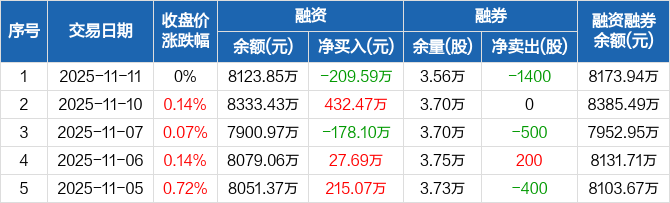 顺控发展:融资净偿还209.59万元,融资余额8123.85万元(11-11)