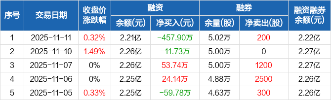 张裕A:融资净偿还457.9万元,融资余额2.21亿元(11-11)