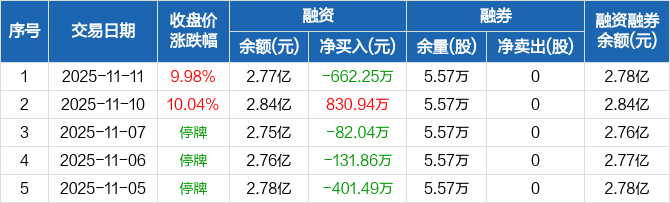 维信诺:融资净偿还662.25万元,融资余额2.77亿元(11-11)