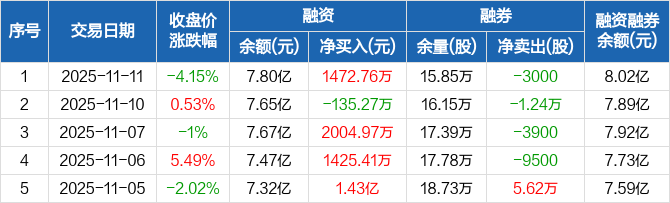 思源电气:融资余额7.8亿元,创近一年新高(11-11)