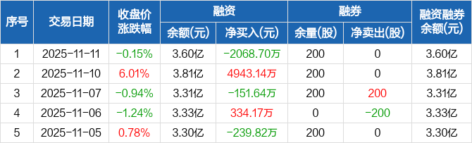 贝因美:融资净偿还2068.7万元,融资余额3.6亿元(11-11)