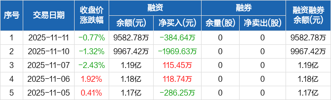 亚联机械:融资净偿还384.64万元,融资余额9582.78万元(11-11)