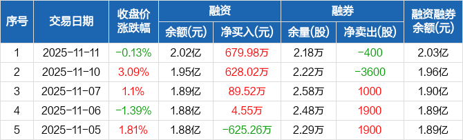 坚朗五金融资融券信息显示,2025年11月11日融资净买入679.98万元;融资余额2.02亿元,较前一日增加3.48%。