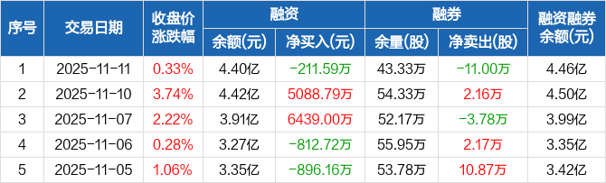 太阳纸业:融资净偿还211.59万元,融资余额4.4亿元(11-11)