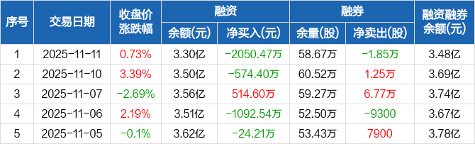 巨星科技:融资净偿还2050.47万元,融资余额3.3亿元(11-11)