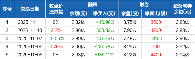 钱江摩托融资融券信息显示,2025年11月11日融资净偿还446.98万元;融资余额2.82亿元,较前一日下降1.56%