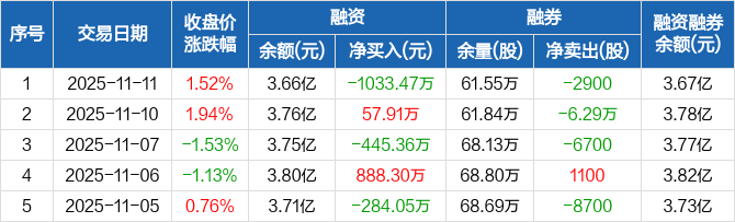 苏宁环球:融资净偿还1033.47万元,融资余额3.66亿元(11-11)