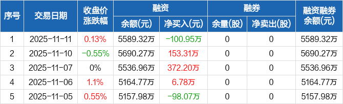 聚胶股份:融资净偿还100.95万元,融资余额5589.32万元(11-11)