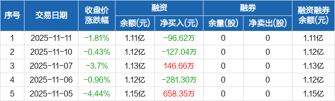 康平科技:融资净偿还96.62万元,融资余额1.11亿元(11-11)