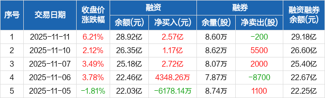 江波龙融资融券信息显示,2025年11月11日融资净买入2.57亿元;融资余额28.92亿元,创历史新高,较前一日增加9.76%