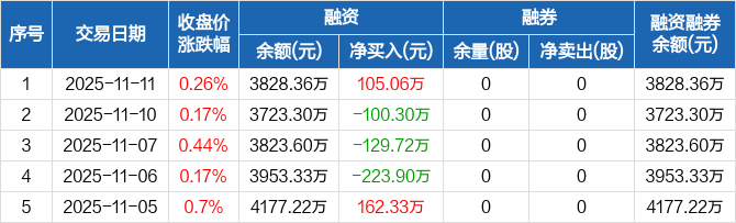 仁信新材:融资净买入105.06万元,融资余额3828.36万元(11-11)