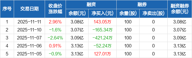 翔楼新材:融资净买入143.05万元,融资余额3.08亿元(11-11)