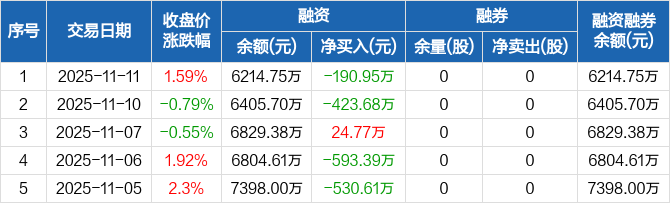金三江:融资净偿还190.95万元,融资余额6214.75万元(11-11)